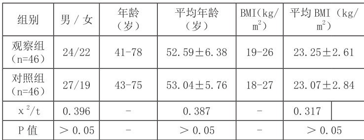 92 例接受介入手术治疗的患者的基本资料见表1。