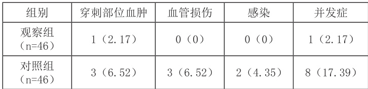 术前根据介入手术治疗的相关需求,做好相关的准备工作,向患者介绍手术治疗方案。术中操作的过程中,各项技术操作均严格遵循无菌技术规程,并对治疗期间的生命体征指标进行监测。完成介入手术治疗后,加强对穿刺点的护理。