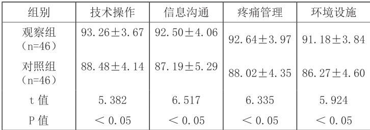 实施介入手术治疗的过程中,由于各项技术操作的精度较高,需要通过精细化的介入手术室护理来提高手术的有效性和安全性。介入手术室护理的开展,在保障技术安全、并发症防控的基础上,应该重视人文关怀,根据患者的身心感受和实际需求,进行个体化的护理干预,有效控制病情的同时,可以让患者获得舒适、安心的诊疗体验,对于提高疾病治疗效果以及保障治疗安全有着积极的影响[3]。
