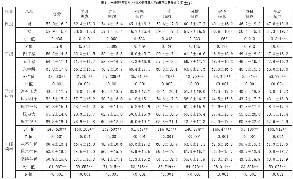 安徽省小学生睡眠与心理健康现状及相关分析基于心理普测视角