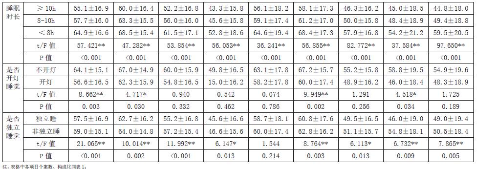 表1一般资料对小学生睡眠状况、睡眠质量和睡眠障碍的影响因素分析(n=4516)