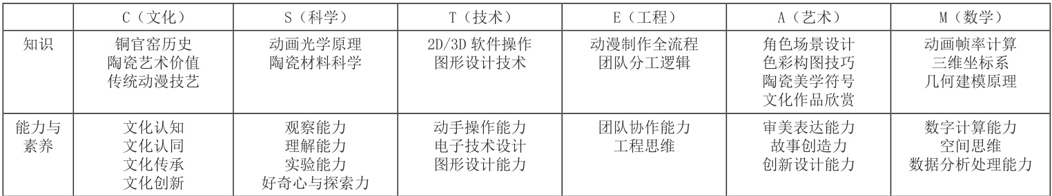 通过教学目标解析,发现 C-STEAM 教育理念的基本特征,为动漫文化校本课程开发提供了理论支撑。动漫作为青少年颇为喜爱的艺术形式,能够有效将传承优秀传统文化和传播现代核心价值观进行有机融合。动漫创作具有跨学科性,涵盖艺术、文学、数字技术等所学科知识,符合 C-STEAM 理念的核心内涵。相较于传统考试学科课程,动漫文化校本课程具有地域适应性和文化针对性。学校可依托地方文化资源,开发具有地方特色、贴近生活的校本课程。