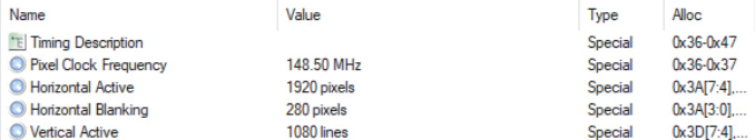 分析接一代和二代激光电视时 Soundbar 读到的 EDID,发现详细时序块里对应 1920*1080 的数据块里的 Horizontal blanking(HBlank)不同,一代激光电视里是160 pixels,而二代激光电视里是280pixels。