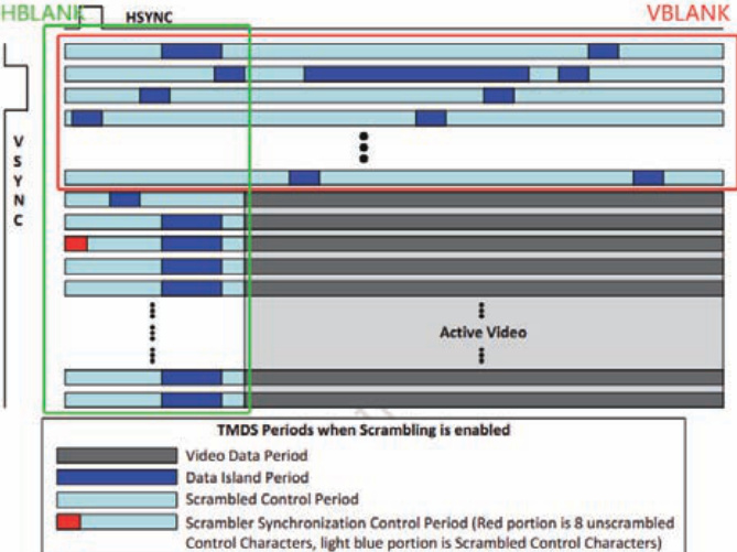 在HDMI 系统中,HBlank 的设置需要确保音频数据包能在消隐区间内完整传输。