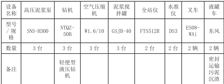 (4)施工机械设备配置。配备如表 1 所示的各类施工机械设备,并做好检查与保养维修工作。