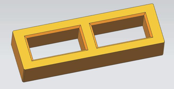 烙铁尺寸根据条烟规格进行设计,以普通包装条烟为例,上下烙铁板长度为 305mm ,下烙铁板保持不动,上烙铁板由气缸驱动,结构见图 4、5。在 GD下游机推条盒烟包的推杆尽头位置,安装了光电传感器,推杆每推动条盒烟包一次,光电传感器就得到一个脉冲信号,然后通过 PLC 控制装置驱动气缸完成美容,工作与原机同步,当气缸控制连杆往下运行,烙铁板对条烟进行美容整形,美容时间设定在0.7 秒,当气缸控制连杆往上运行,烙铁上行,条烟被推出。