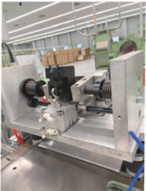 烙铁行程主要根据条烟受力的压紧程度进行校准,以烟条压缩 0.3mm 为宜,可以通过调整连杆位置进行校准,或者通过条烟烟膜工装压紧(见图 6)来调整,也可通过调整气缸关节轴承进行微调。