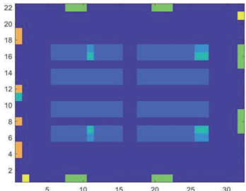 迪杰斯特拉常用于计算一个节点到其他节点的最短路径,若要实现迪杰斯特拉算法,则必须求解地图节点信息中的邻接矩阵,根据数据文件可视化可知该图中共有 32*22 个点,所以邻接矩阵的大小为 704*704,又因图中除了灰色的点与黑色的点都是可到达但是不可经过的,如果我们将对应节点设置成无穷大,则这些节点也会被视为不可到达点,所以为了避免这种情况的发生对结果产生影响,我们将这些节点周围的节点到达该节点的距离设置的较大,从求解最短路径的维度上来说,这些不可经过可达到的点就跟不可经过不可达到节点区分开来,最终按照 map.csv 中每个点的可到达点以及各点的类型,算出该图的邻接矩阵。通过Matlab 对迪杰斯特拉算法进行实现求解。