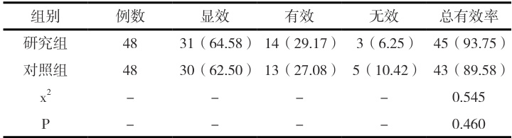 表1 治疗效果评价与比较(例, % )