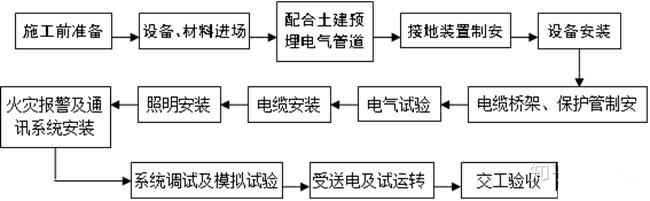 设备的调试是保证机电设备良好稳定运行的重要基础,也属于机电安装工程施工的重要准备阶段。在实际调试过程中必须要遵循设备对应调试原则,确保调试过程能够符合相关要求。常见的调试方法是将被调试设备调整至初始状态,根据设备情况和设备要求注入润滑剂。在这个过程中还要对设备的所有零部件的安全性和状态进行确认,以此确认设备处于安全运行状态。重点关注机械部件中的传动部件以及气液管路的完整性,才能够真正的确保设备在后续的使用过程中完整安全稳定。此外,还需要关注电路接线的情况,查看电压是否符合要求,确认完成后通电通气进行设备的试运行完整整个调试过程。这个过程是保证设备安全稳定运行的关键,对整个机电安装工程的意义重大,需要参与调试人员具有充分的责任心和良好的基础水平,确保调试工作合理有效。下图展示了机电安装工程的主要流程。