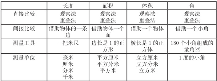 长度、面积和体积作为度量概念的有机整体,虽然分布在不同的年级,但它们不仅在结构上具有内在关联性,而且在要素构成上具有内在逻辑;一维的长度是二维的面积的构成要素,一维的长度和二维的面积又是三维的体积的构成要素;反过来,后者分别又是在前者基础上形成和拓展的。