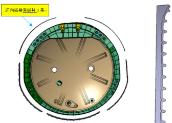 航向定位靠每个带板两侧与球面压力框框缘的距离保证,贴球面框外形,周向靠耳片与长桁(或者隔板)的相对位置决定,可进行微调,需同时兼顾所有的耳片及长桁(或者隔板)。