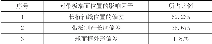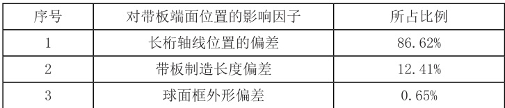 (4) 按照 VSA 对于带板的计算过程,带板端面的位置影响因素中, 基准长桁的位置度占较大比重,球面框的外形影响因素贡献比较小。以下壁板为例,假设带板无制造偏差, 按照 间长桁位置对准带板,长桁位置偏差1 mm,带板端面偏1 mm ;球面框外形做大0.8 mm,带板端面位置相对于球面框单侧缩短0.4 mm,因此球面框外形并不是最主要的影响因素。