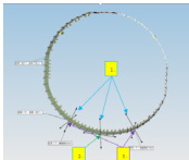 建模如下图 4 所示,1 号处采用 3 点与面贴合模拟带板贴球面框外形;2 号处使用点与线贴合模拟带板中间的耳片与长桁轴线对准;3 号处采用点与面之间的距离模拟带板在航向上的定位。其余两个带板类似,图中建模考察对象有两种,一是带板端面相对于理论位置的波动,二是两个带板相邻端面之间距离的波动。5.3 计算结果及分析