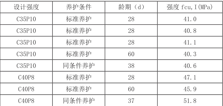 混凝土试块养护达到龄期后,检验结果均满足设计和规范要求,如表2 所示