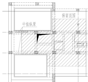 经混凝土浇筑记录溯源和现场勘查结果显示,掺入超缓凝剂的混凝土均位于侧墙中,设备板及板梁范围内混凝土均未受影响,因此,保留大部分中板及中板纵梁,对侧墙劣质混凝土及墙上环梁进行拆除。设备层板保留范围如图 2所示。