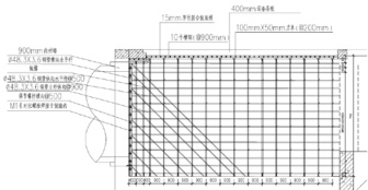 车站小里程端端头井中板厚 400mm ,模板支撑系统采用 φ48. 3mm×3. .6mm扣件式钢管脚手架,立杆采用顶部带可调上托,通过调整上托来调节模板支撑的高度。中板模板立杆间排距 900mm×900mm (横 × 纵),步距为 1500mm。板底模采用 15mm 胶合板,板底小梁由 48mm ×100mm 方木