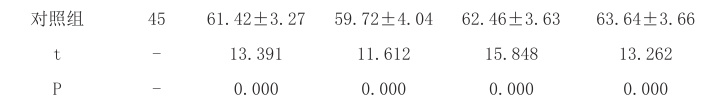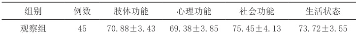 表2 对比两组护理后的GQLI/74 评分(