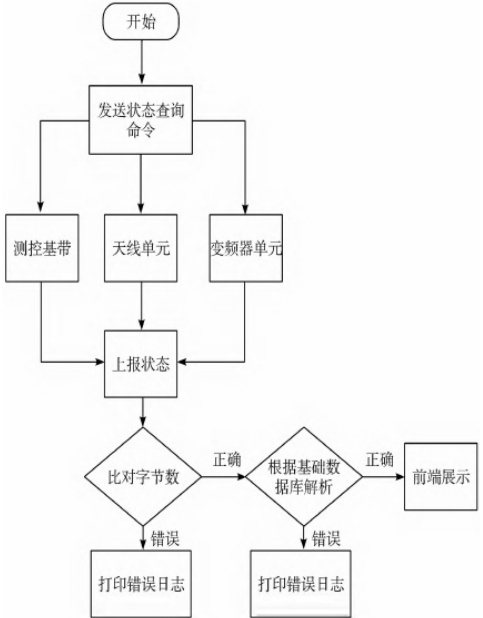 设备监控模块承担对总线控制单元、高功率放大器、上变频器、调制解调器等测控子站关键设备的集中监控与管理职能。该模块通过实时监测设备运行状态,能够自动生成设备运行参数的日志记录,同步触发系统告警机制并执行故障诊断与处置流程,从而有效提升测控子系统运行安全性与稳定性。具体工作流程(如图2)所示。