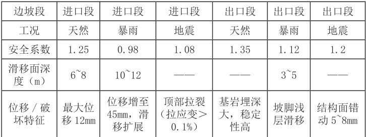 通过对边坡稳定性进行计算,得到以下结果(如表2 所示)。