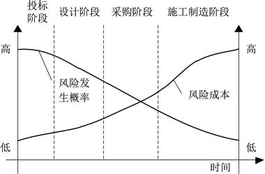 自动化码头AGV项目在实施过程中呈现出风险概率逐渐降低而风险成本不断上升的规律性,随着项目的推进,前期由于信息不完整、技术不确定性大,风险发生的概率较高,但通过不断优化设计、完善计划和早期控制措施,风险事件的发生频率会逐步减少,然而项目本身是一个持续投入人力与物力的过程,随着阶段深入,系统构建愈发复杂,一旦发生风险其处置所需的代价也随之增大,例如若在设计阶段发现问题,只需通过图纸调整便可快速修正;但若在制造甚至部署阶段才发现设计缺陷,则可能导致大量已生产AGV设备(高达150台)需重新采购零部件、返工调试或系统重新集成,不仅时间损耗巨大,财务支出也会急剧增加,因此AGV项目的高设备量和系统集成复杂度,使其后期风险成本相较于其他自动化系统更为高昂,这要求项目团队必须强化前期风险识别与预防,尽量在项目初期控制关键变量,降低后期高成本风险事件的发生概率[2]。