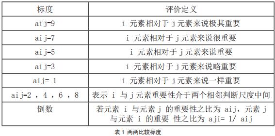采用 1~9 尺度来表示元素 Ai 相对于 Aj 重要程度,用倒数表示不重要性。