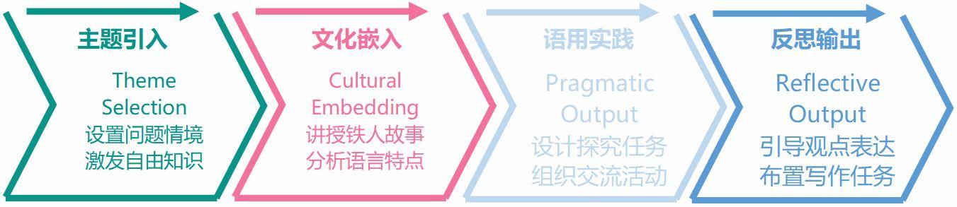 将铁人精神融入大学英语教学,不仅要注重内容的选择,更应关注教学目标与课堂结构的系统设计。基于“课程思政”对知识传授与价值塑造同步达成的要求,本文提出一套“四阶段教学整合模型”,包括“主题引入—文化嵌入—语用实践—反思输出”四个教学阶段。该模式强调情境真实性、任务驱动性和价值引导性的融合,旨在提升学生的语言表达能力、跨文化思辨能力与文化认同感。