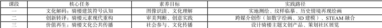 以《骑楼时空——从历史到未来的视觉叙事》大单元为例,设计三个递进式课段:
