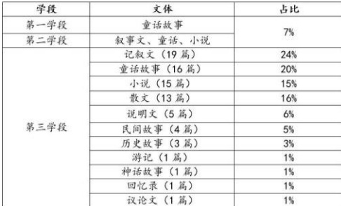表 1:各学段长文文体占比