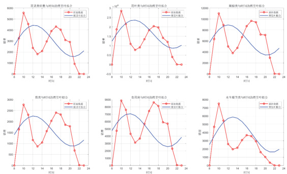 日内尺度:傅里叶拟合显示所有品类存在双峰特征(图1)。主峰位于8:00-10:00(贡献 52.7%±3.2% 日均销量),次峰出现在 13:00-18:00( 28.4%±4.1% )。品类间衰减幅度差异显著:水生根茎类次峰振幅衰减 63% ( F=38.72,p<0.01 ),远高于食用菌类 21% 的衰减率。