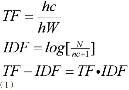 将这两个文本向量化,TF-IDF 模型它能够反映汉字或者单词在文本中的重要程度,以下方程是对此模型的解释: