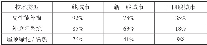 表 1 :被动技术新建建筑渗透率