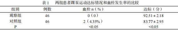 1.3观察指标:观察并比较两组患者踝泵运动达标率,比较两组患者血栓的发生情况。