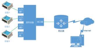 ①端口映射。在计算机网络中,IP+端口可以唯一定位一台设备。透传设备的出口通常连接路由器或交换机,与外网通信,而入口端则连接物联网设备。由于入口的物联网设备可能有多台,透传设备本身只有一个IP,因此只有通过不同的计算机网络端口区分接入的物联网设备。
