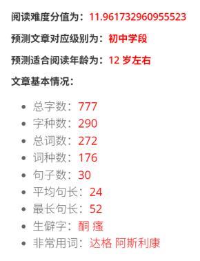 [14]程勇,徐德宽,董军.基于语文教材语料库的文本阅读难度分级关键因素分析与易读性公式研究[J].语言文字应用,2020,(01):132-143.