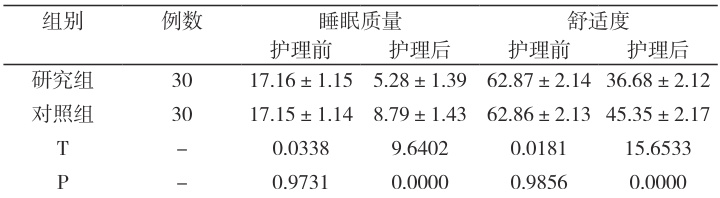 表3 两组舒适度、睡眠质量对比(分, x ± s )