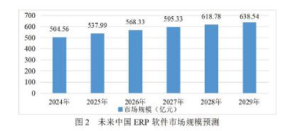 另外,本章借助 EViews 数据分析软件,基于上文 2011 年至2020 年的中国 ERP 软件市场规模数据,采用时间序列模型对2024 年至2029 年中国 ERP 软件市场规模进行预测。由于篇幅有限,省略步骤,仅展示结果,如图2 所示。