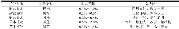 专性盐生植物如碱蓬等具备聚盐生理机制能选择性地吸收并富集土壤中可溶性盐分,泌盐植物如柽柳等能通过盐腺或泌盐孔道等特化结构将体内过剩盐分离子主动排出。通过这两类植物的组合种植模式,能形成协同脱盐效应,以降低土壤电导率和改善基质的理化性质。