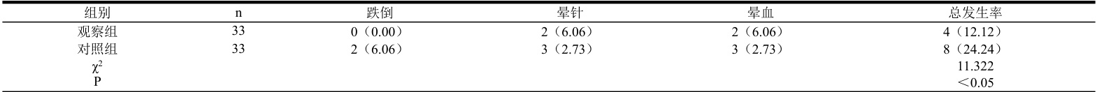 进一步研究发现,管理后,观察组无跌倒体检者,分别有 1 例晕针和 1 例晕血体检者,不良事件发生率比对照组更低,再次说明人性化护理模式能够提高健康管理中心护理管理水平,可以防范风险事件的发生,有助于保障体检者的安全。本文研究结果显示,