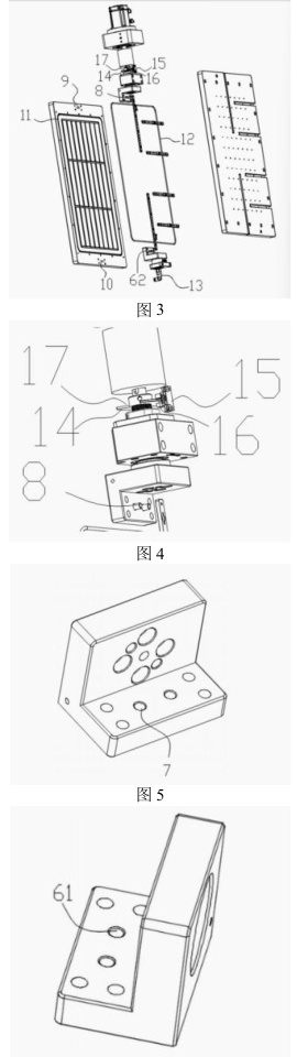 为了提高对不同形状贴合件的适应能力,真空吸附底板5 上还设计有镶嵌槽位 11,可安装镶嵌件12(如图3),便于更换与调整。此外,为满足吸附操作的气动控制需求,锁紧件 6 上设置了旋转式气动接头13 及锁紧孔位61,并通过锁紧螺钉62 实现稳固连接(见图6)。