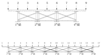 图3.1 荷载沿横桥向施加位置(四梁式) 图 3.2 荷载沿横桥向施加位置(八梁式)