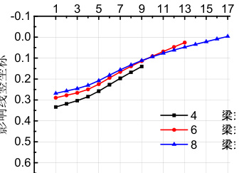 (2)随着桥面板增厚,各主梁的系数逐渐减小;厚度由200mm 增至280mm,1# 梁的系数下降约2.8%,2#梁的系数系数下降约 1.5% ;厚度由200mm 增至360mm,1# 梁的系数下降约4.8%,2# 梁的系数系数下降约 3.8%c 。说明增加桥面板厚度可在一定程度上降低主梁的荷载横向分布系数,令荷载在横向的分布更加均匀。