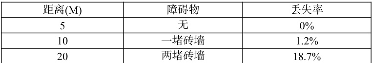 如表 2 所示:满足稳定性,正常环境下,平均数据丢失率 <1% ,满足可靠传输要求。在传输距离上,无障碍 10 米内传输稳定;隔一堵砖墙(10米)丢失率约 1.2% ;隔两堵墙(20 米)丢失率显著升高至 18.7% ,满足病房内需求。