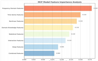 为了深入理解模型的决策机制,本文对各特征的重要性进行了分析。图6 显示了八种不同特征 类型的重要性评分。频域特征具有最高的重要性(0.18),其次是时间序列特征(0.15)和非 线性特征(0.14)。这一结果为特征工程和模型优化提供了重要指导。