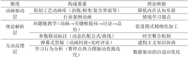 基于上述理论,本文提出“动画驱动-理论解析-互动反馈”的三维教学模式(表 1),其核心架构如下: