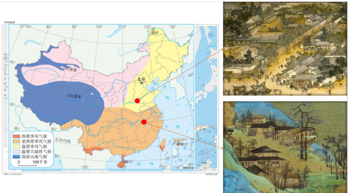 (2) 理解中国南北方的自然环境特征,以及如何影响当地的传统民居建筑。