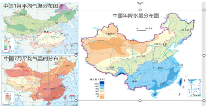 图2 中国的气温分布图与降水分布图