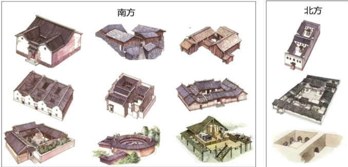 图3 中国南北方传统民居图