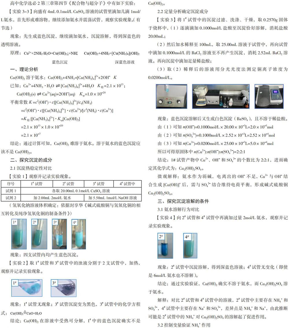 探究硫酸铜溶液与氨水反应的实质