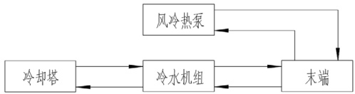 冬季,方案2 运行的设备有:风冷热泵、热水泵以及末端系统。流程图与方案2 的前 5 年运行流程图一致。